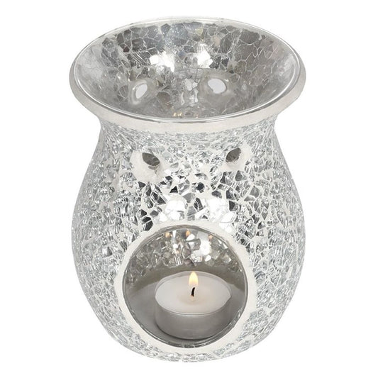Large Silver Crackle Oil Burner